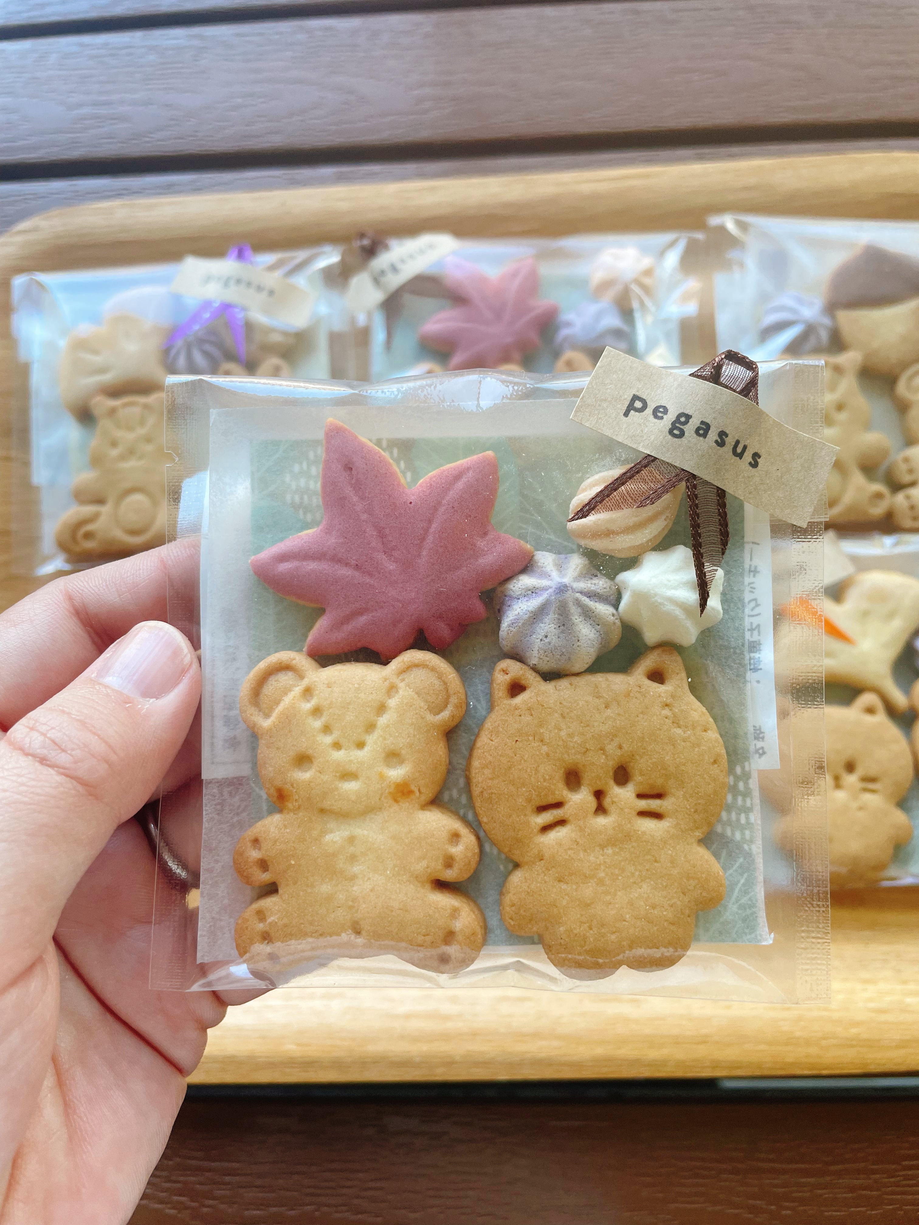 秋の動物クッキー(バニラ生地)ともみじやイチョウ、どんぐりのアイシングクッキー、メレンゲクッキーを詰めました!