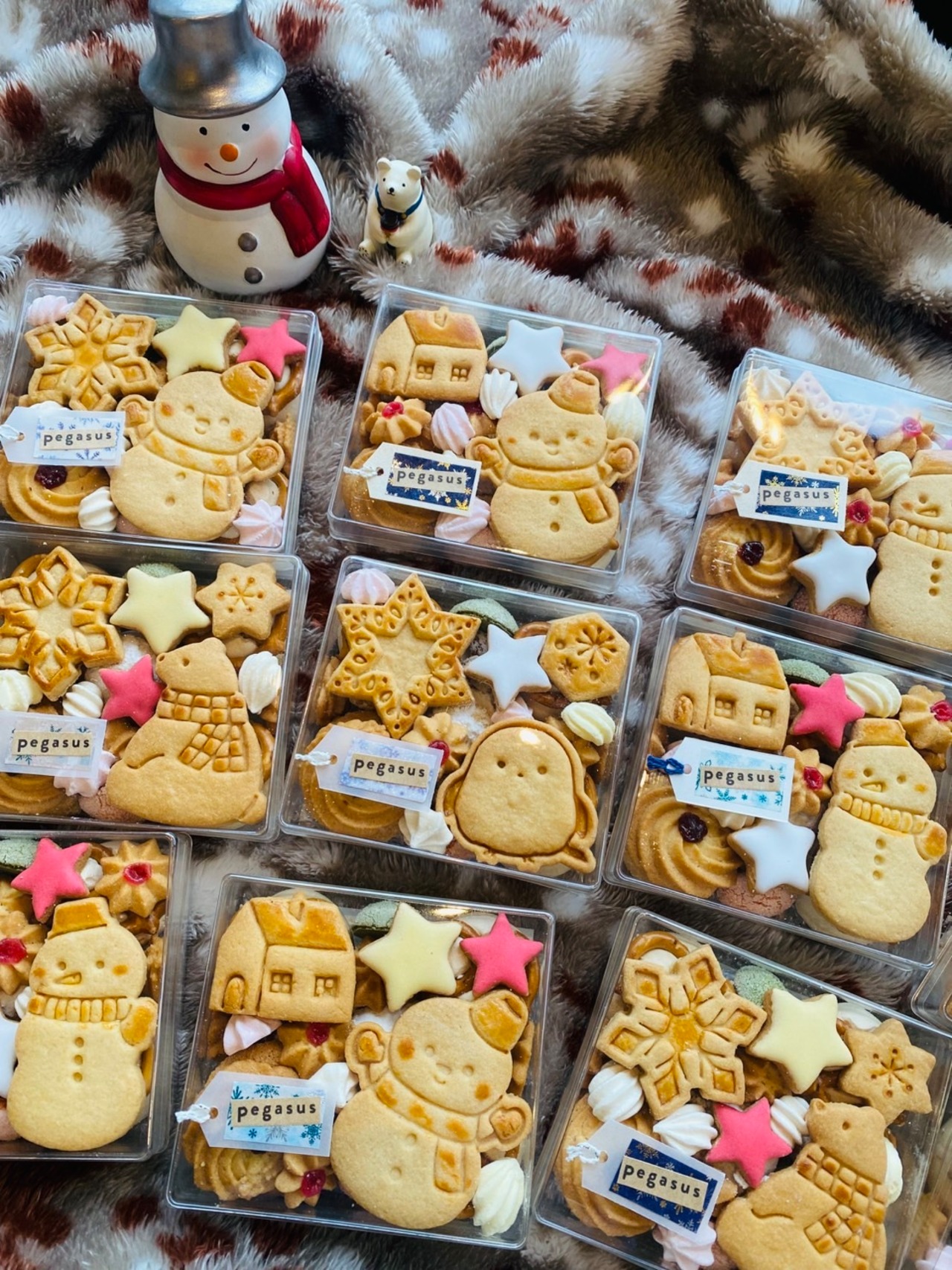 冬のモチーフのクッキーを詰めたクッキーboxです。雪だるまや手袋、雪の結晶などをメインに詰めました*